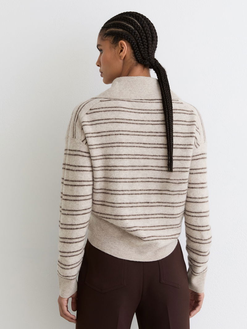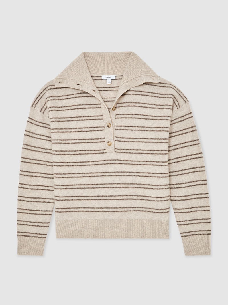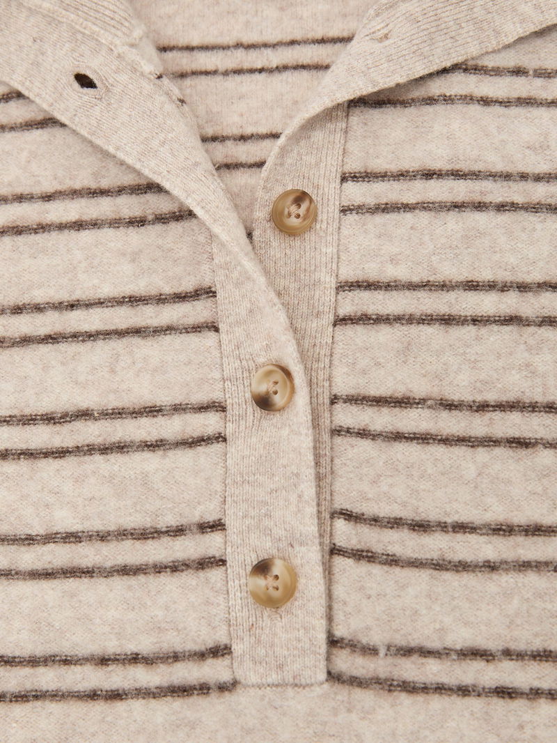 Wool-Cashmere Stripe Buttoned Jumper In Neutral/Brown