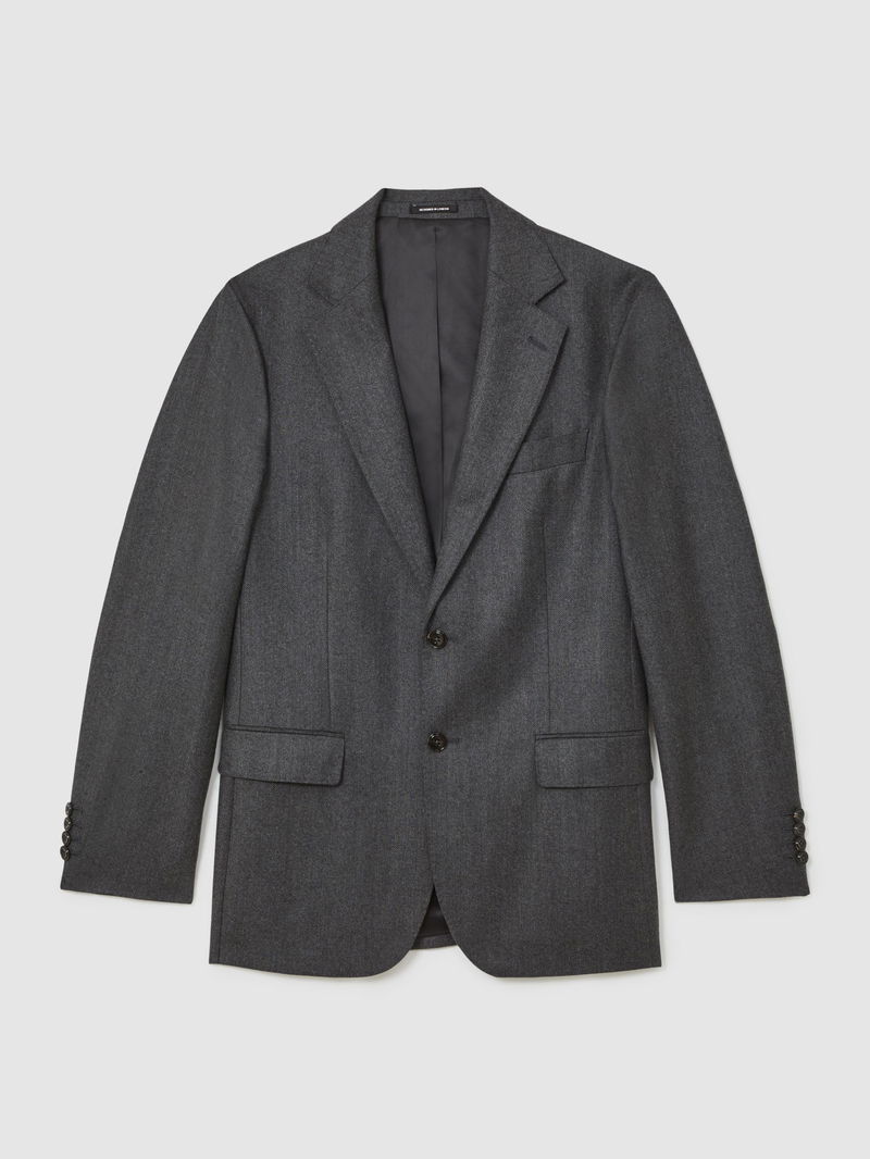 Wool Flannel Single-Breasted Blazer Classic-Fit In Charcoal Grey