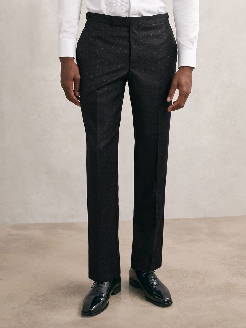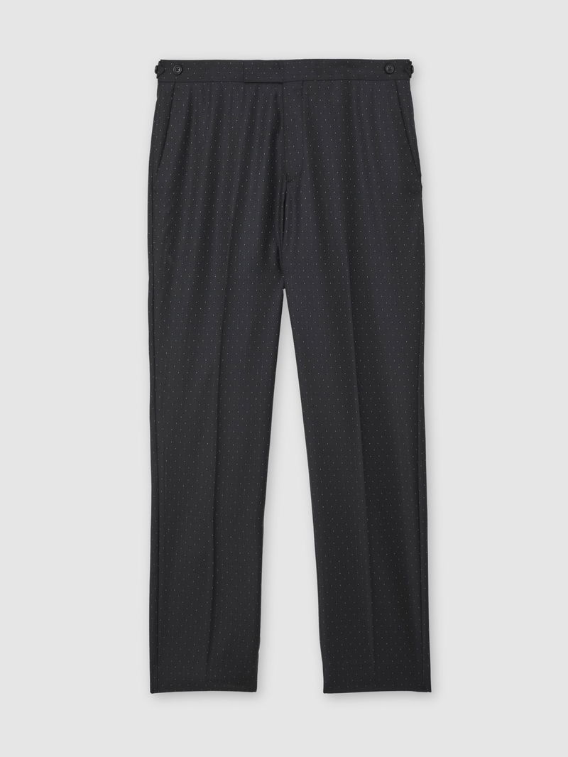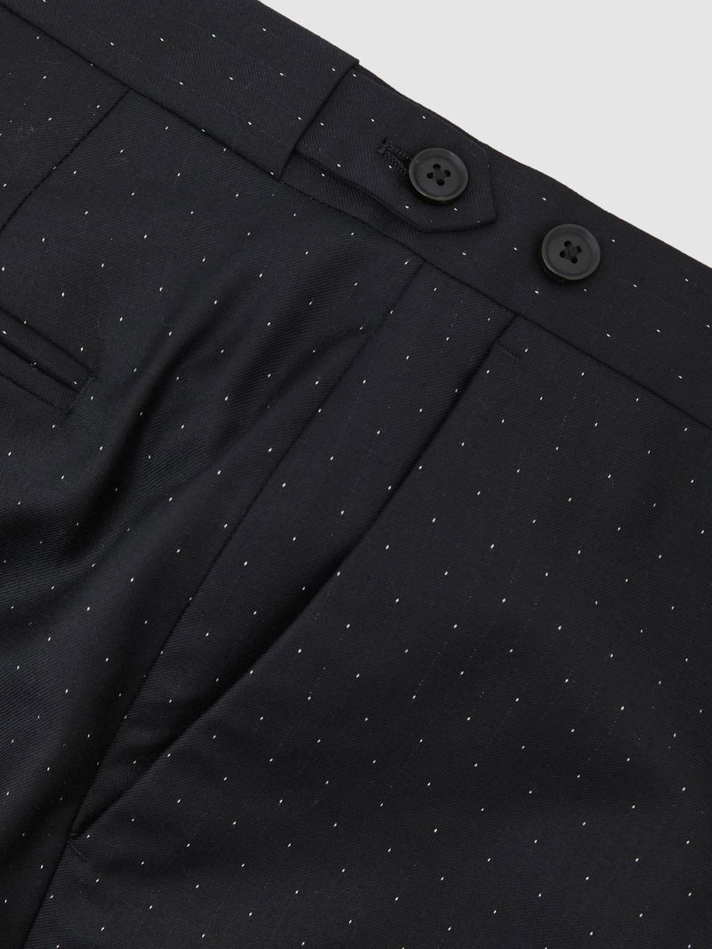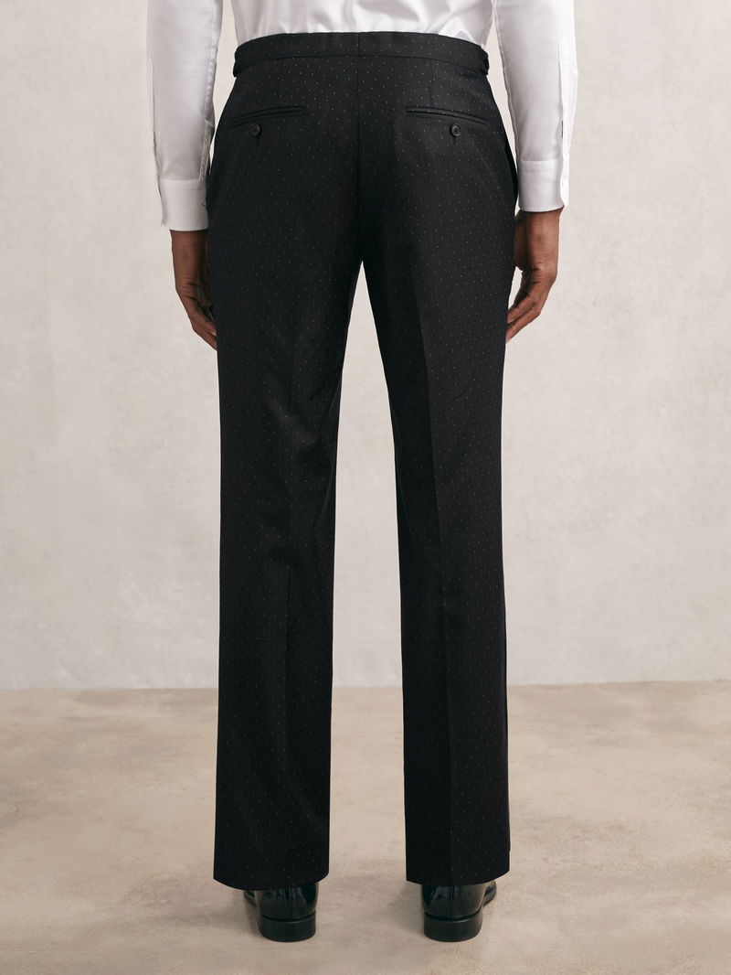 Wool-Silk Polka-Dot Suit Trousers Classic-Fit In Midnight Navy