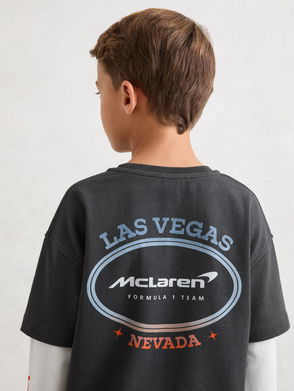 The Pole T-shirt, crafted from 100% cotton, drops exclusively for the British GP. A blurred McLaren Formula 1 Team graphic captures the speed of race day, while the rubberised ‘81’ and ‘04’ reference the driver numbers. A Union Flag detail is a nod to the team’s home race. British GP race exclusive 100% cotton McLaren F1 Team graphic print Rubberised driver numbers and McLaren F1 Team brand tag Great Britain sleeve print McLaren F1 Team Speedmark logo at sleeve Rubberised Union Flag to reverse Unisex fit Presenting the Reiss x McLaren Formula 1 Team Collection Season 02, our exclusive collaboration with the McLaren Formula 1 Team.