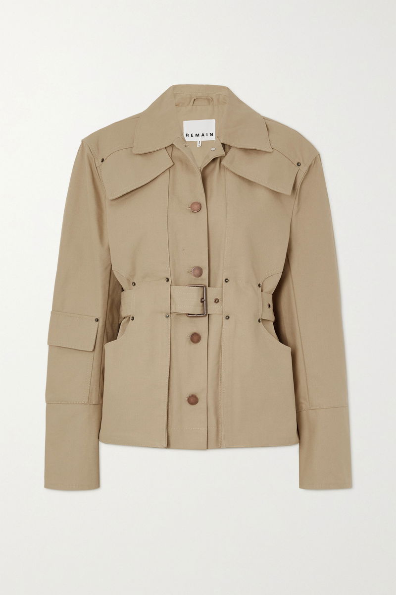 The loose cut of REMAIN Birger Christensen 'Aggie' jacket lends itself beautifully to layering. Made from organic cotton-canvas, the tan shade will coordinate effortlessly with virtually everything in your trans-seasonal wardrobe. Button yours up to the neck and cinch the waist belt when your outfit calls for a more structured look.