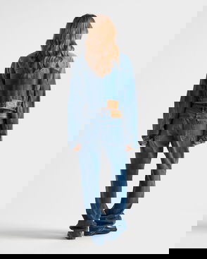 Non-stretch organic cotton- and recycled cotton-blend denim jeans. Fading and darts throughout.