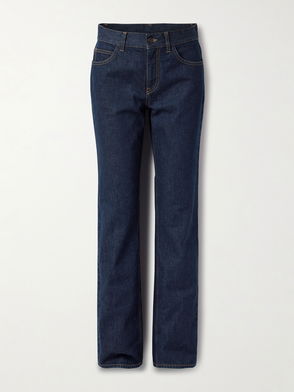 Straight-leg jeans, Denim, Belt loops, High-rise cut, Five pockets, Concealed button and zip fastening at front, Mid-weight, non-stretchy fabric.