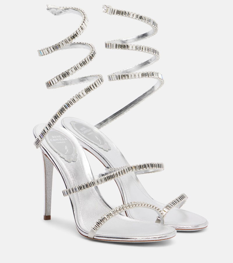 Step into glamour with the Cleo Spark sandals from Rene Caovilla. Crafted in Italy with metallic leather uppers, the sculptural pair feature almond-shaped open toes and are adorned with shimmering embellishments.