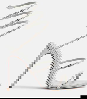 Dainty, shimmering crystals decorate the pair's satin straps and insoles for instant glamour.