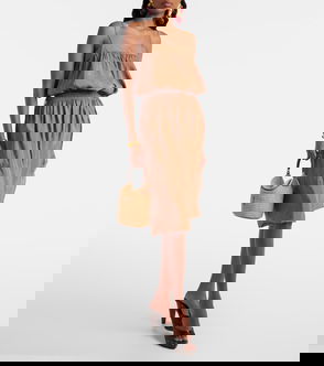 These mules from Rene Caovilla feature the brand’s signature rhinestone embellishments. This style is made from neutral-toned suede and has straps that knot in at the center.