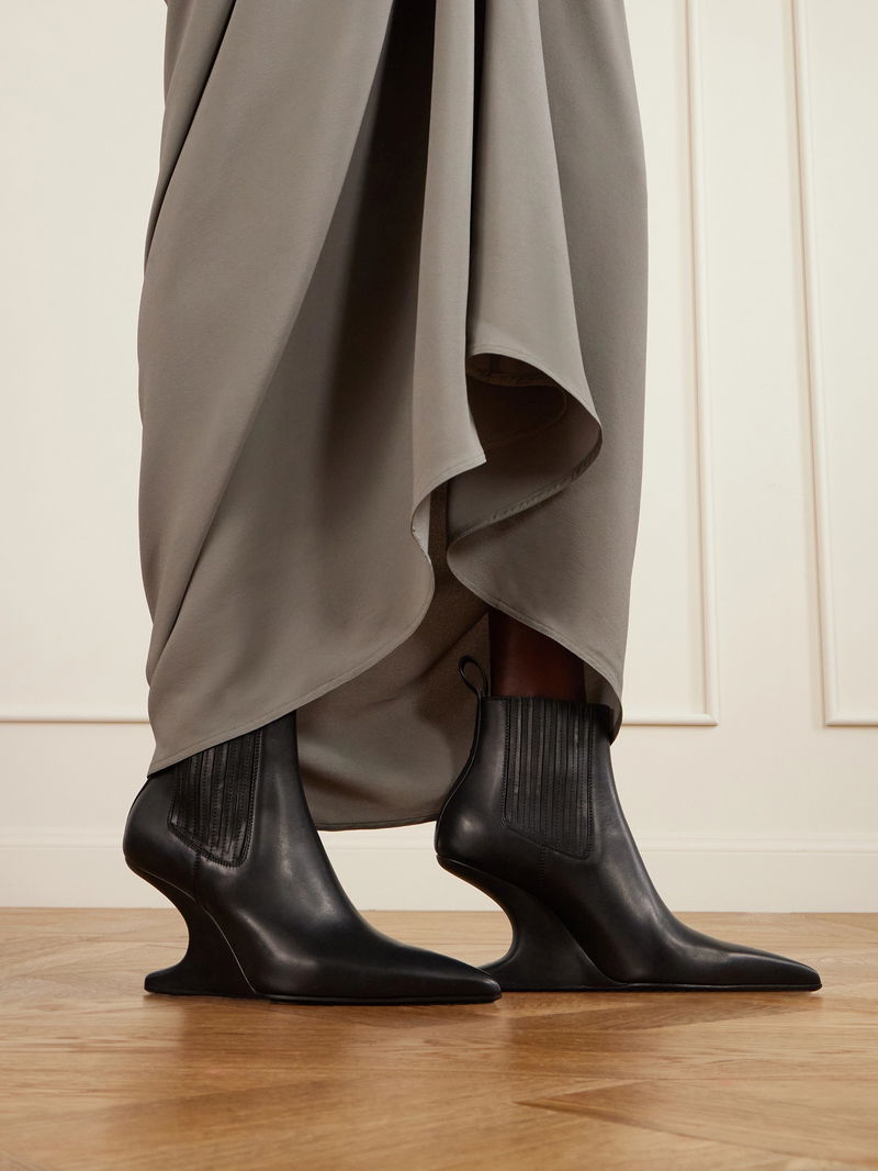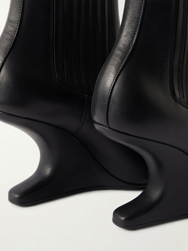 Just like the others from Rick Owens' 'Cantilever' lineup, these Chelsea boots rest on a sculptural heel that curves inward.