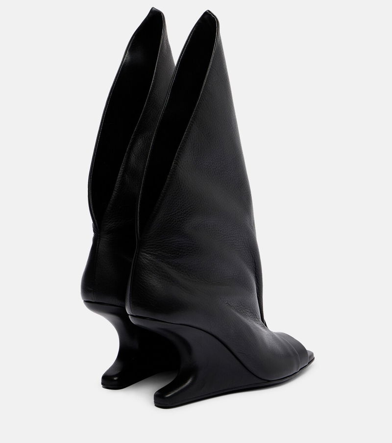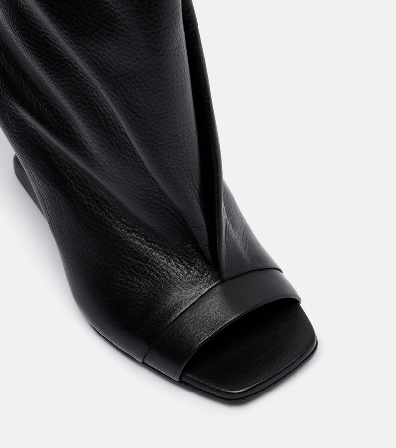 Aptly nicknamed The Lord of Darkness, Rick Owens brings gothic and industrial inspiration to avant-garde design. The Cantilever peep-toe boots are made from supple leather with sculptural uppers and high wedge soles.