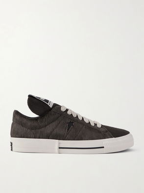The extreme front tab of Rick Owens' sneakers is a key detail of the designer's collab with Converse, and speaks to his daring style more broadly. They're made from leather with tonal paneling and topstitching.