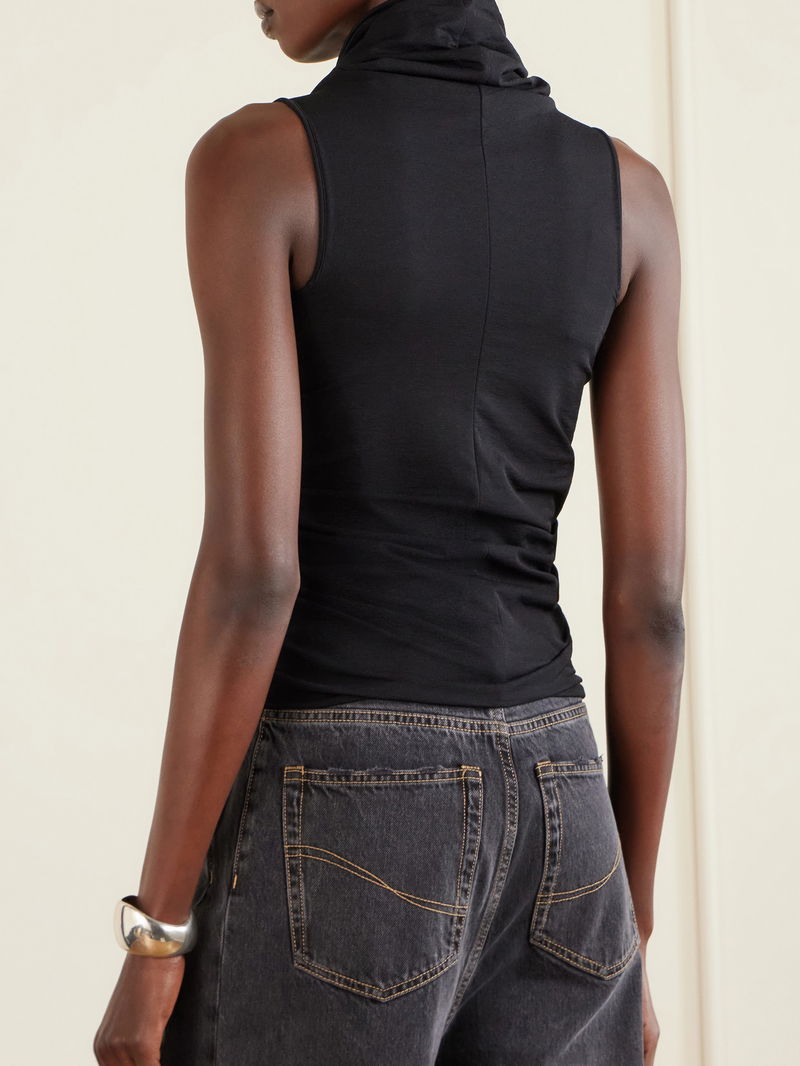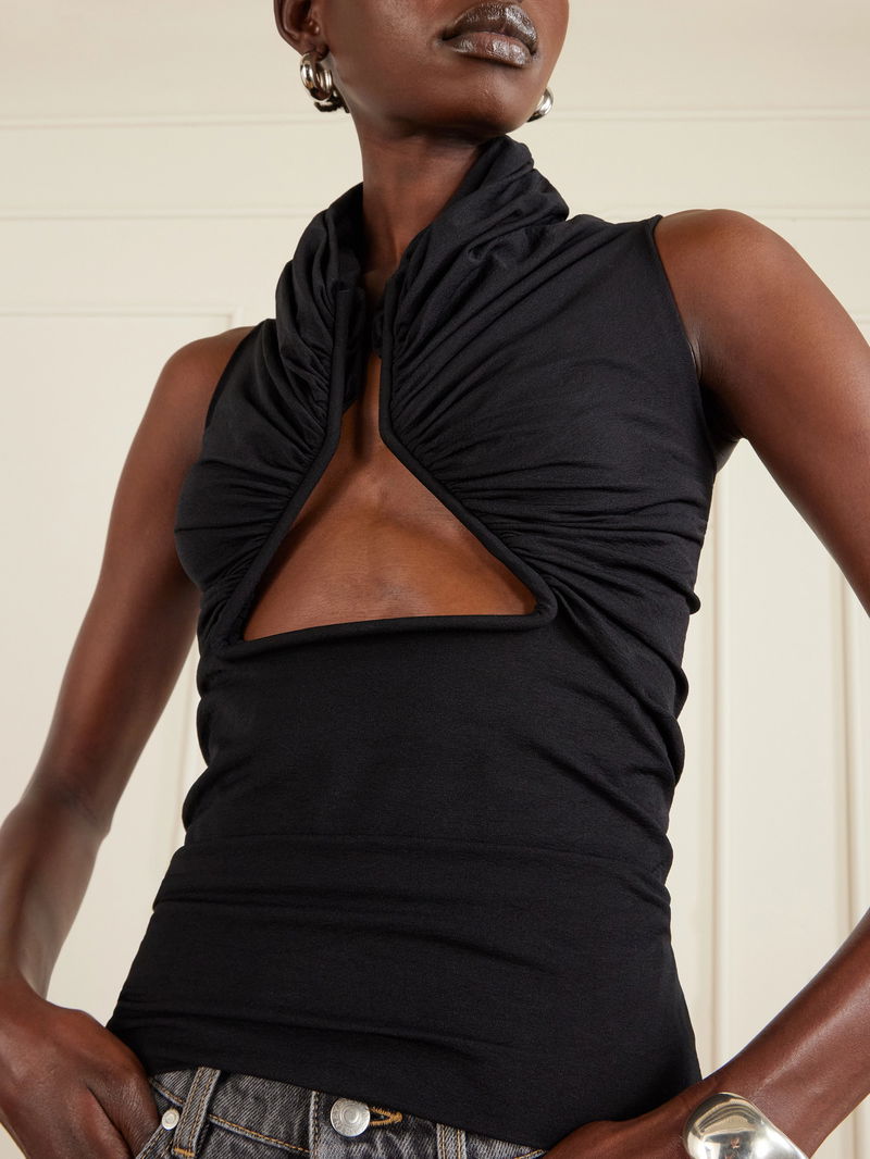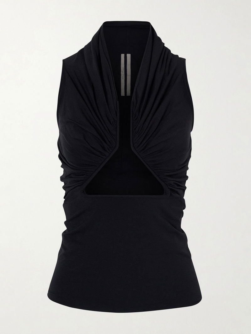 Rick Owens' top channels the designer's signature dark glamour. Made from stretch-jersey, has a bold cutout front that reveals flashes of skin while contouring your figure. Style it with leather.