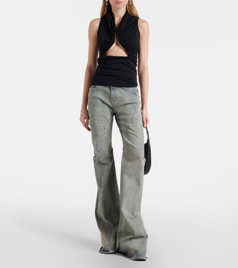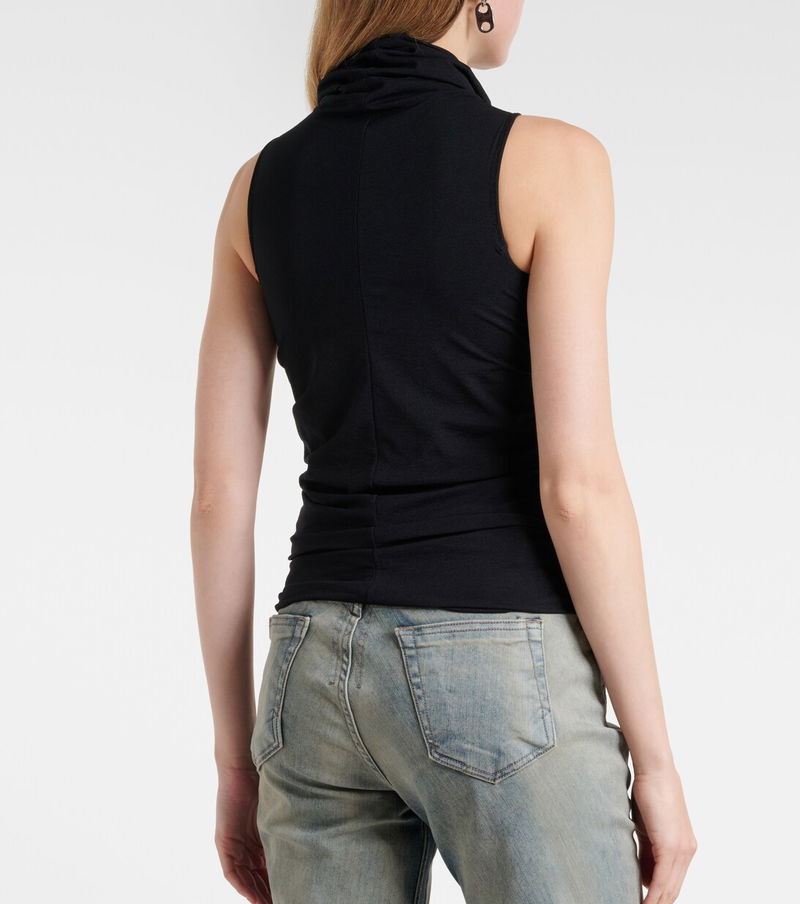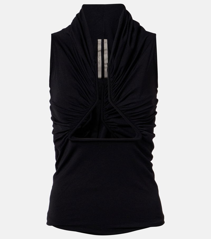 Aptly nicknamed "The Lord of Darkness", Rick Owens brings gothic and industrial inspiration to avant-garde design. Made in Italy, this jersey top features a structured cutout at the plunge and draped ruching.