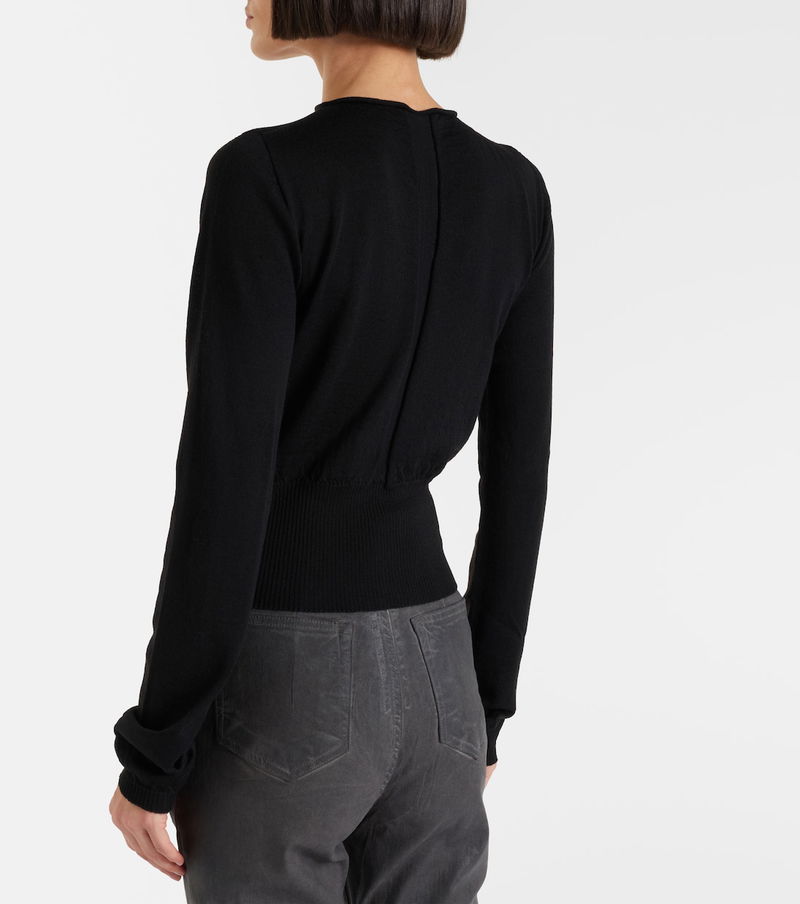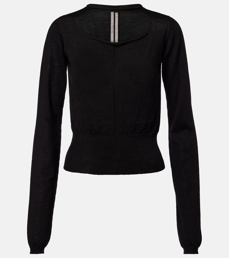 Aptly nicknamed The Lord of Darkness, Rick Owens brings gothic and industrial inspiration to avant-garde design. This virgin wool top is made in Italy featuring a cutout with unstitched edges.