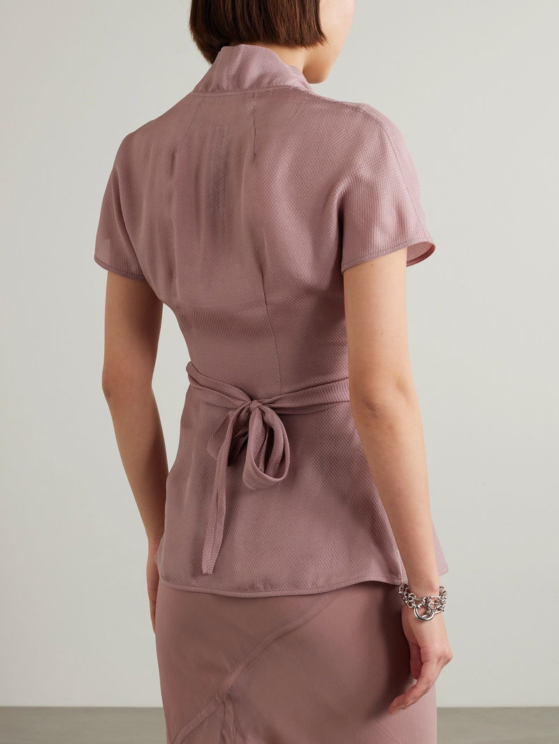 Rick Owens always challenges the conventions of design to create wardrobe essentials that look and feel uniquely elegant. This top is cut from fluid crepe and has a wrap-effect front that's artfully draped and pleated to enhance your shape. Find your preferred fit using the waist ties.