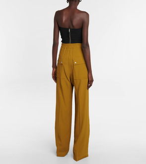 Defined by Rick Owens’ signature longline drawstrings, these black trousers are crafted from satin to a cropped hem with zips.