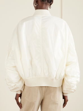 Aptly nicknamed The Lord of Darkness, Rick Owens brings gothic and industrial inspiration to avant-garde design. This bomber jacket is crafted from lamb leather with wool-blend trims and comes with a zipped front.