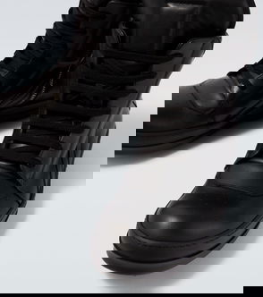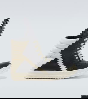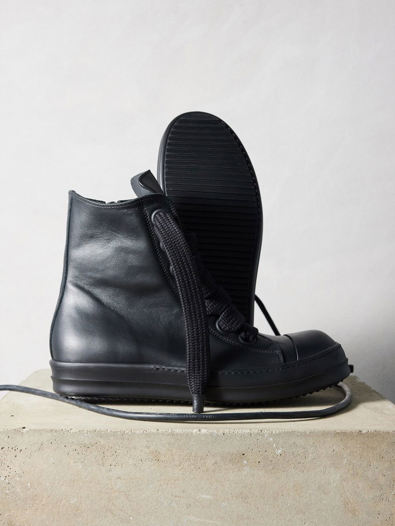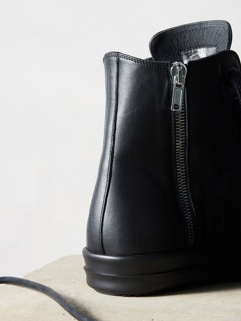 Rick Owens enhances the brooding look of these black leather high-top trainers through polished silver zips running up the sides.