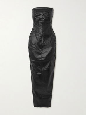 Lido Strapless Paneled Metallic Coated-denim Gown