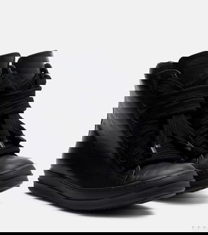 Brand enthusiasts view the DRKSHDW line as an entry point to Rick Owens' subversive design universe. The Megalace sneakers are a high-top pair covered in intricately woven laces and feature zip-up fastenings on the sides.