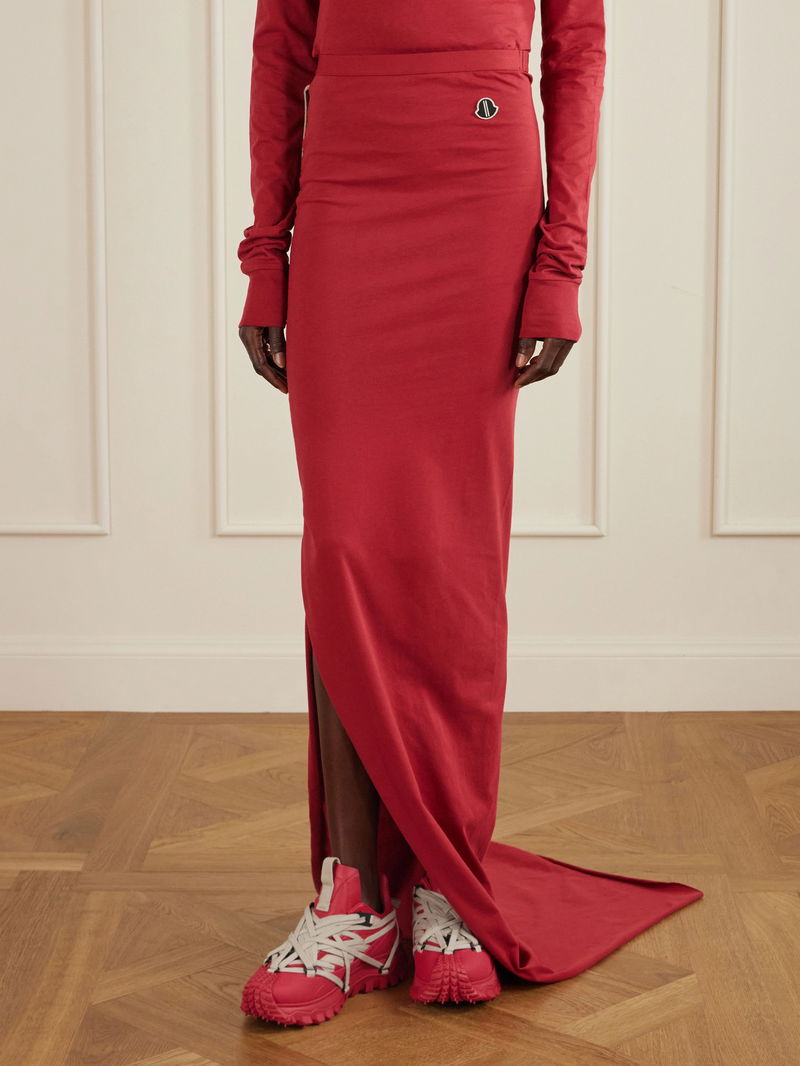 Rick Owens and Moncler join forces to create a striking collection of wardrobe hits. This skirt is made from soft cotton-jersey and has drawstring ties at one side to adjust the fit.