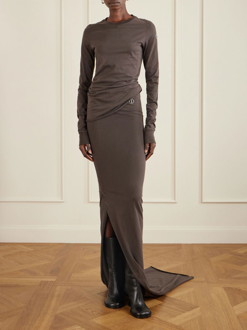 Rick Owens and Moncler join forces to create a striking collection of wardrobe hits. This skirt is made from soft cotton-jersey and has drawstring ties at one side to adjust the fit.
