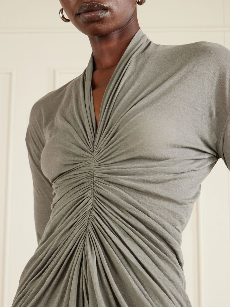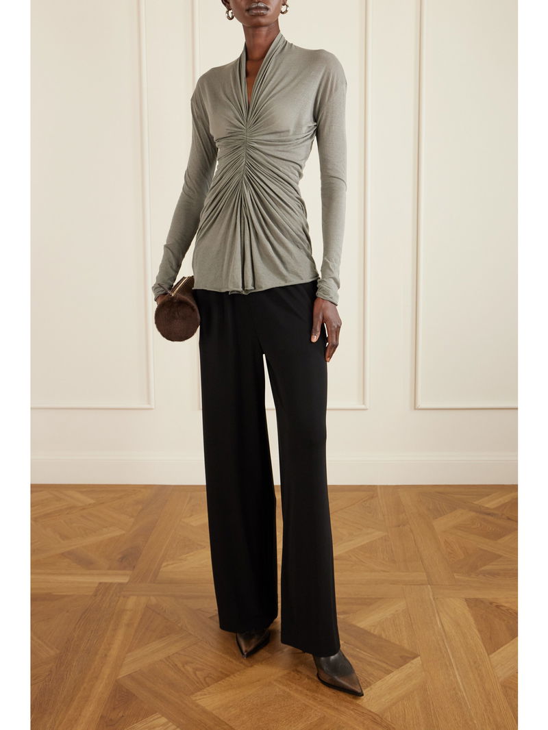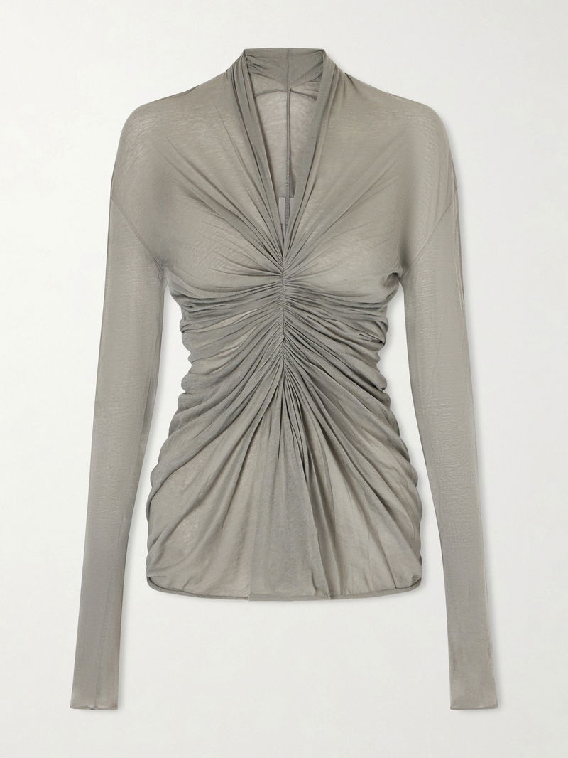 Rick Owens' top serves as a reminder that the designer does modern elegance just as well as grungy styles. It's made from soft, slightly sheer cotton-jersey and is artfully ruched for a close fit and V-neckline.