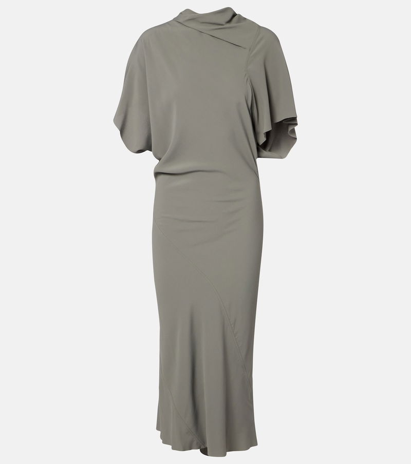The Seb midi dress from Rick Owens embodies the industrial aesthetic that the brand channels in its designs. Crafted with a touch of silk for added softness, this piece features elegant draping.