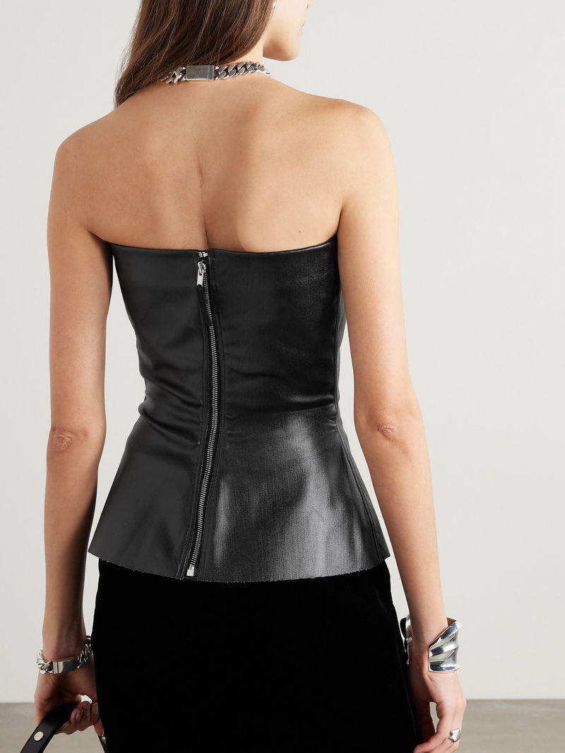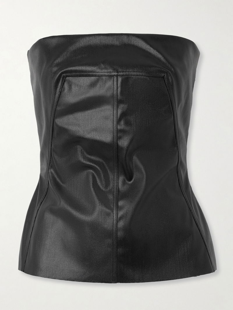 Strapless Coated Denim Bustier Top
