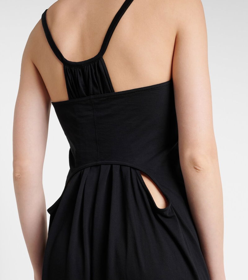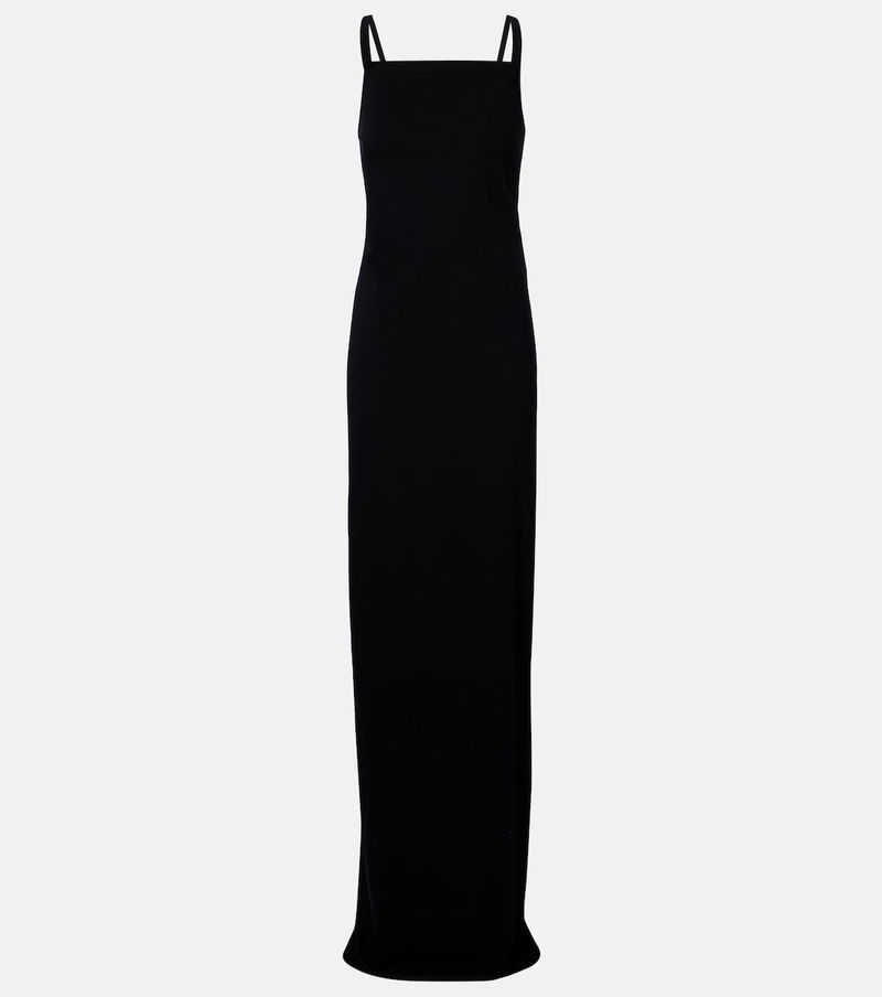 Aptly nicknamed "The Lord of Darkness", Rick Owens brings gothic and industrial inspiration to avant-garde design. The Temple maxi dress is made from cotton jersey and has a layered look in the back.