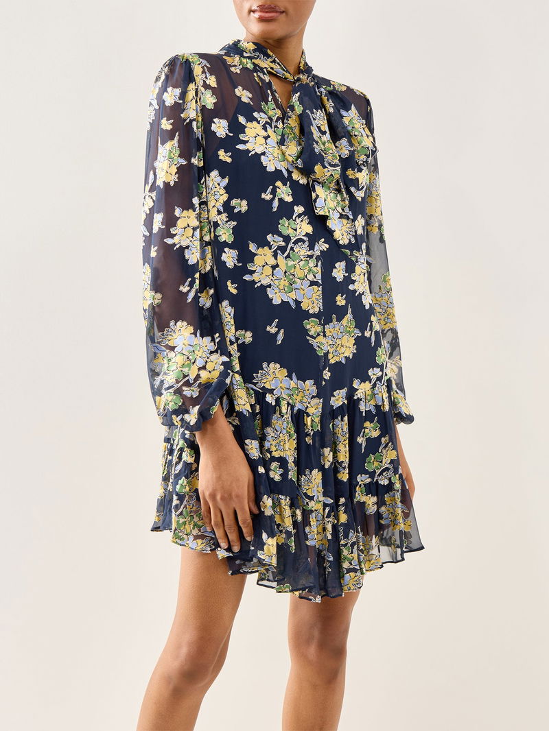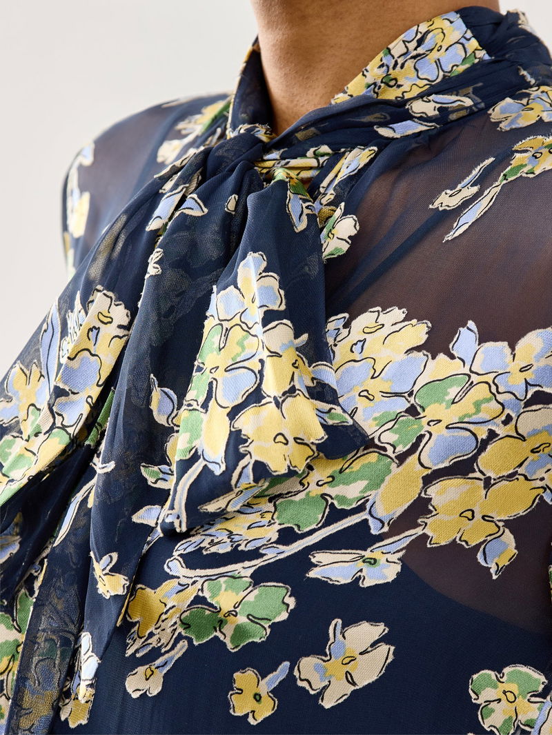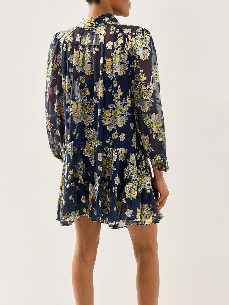 The Anaya Dress by Rixo highlights the brand’s craftsmanship through devoré fabric and romantic detailing. Designed in navy with floral texture, it offers a flattering, fluid silhouette. Style with heels or boots for versatility. A distinctive dress that brings elegance and depth to occasion dressing.