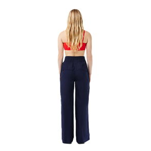 Rixo crepe trousers. Printed, cropped. Zip fastening at back.