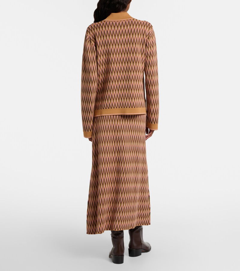 Rixo's vintage-inspired dresses deliver retro charm. The Brandy midi skirt is defined by a geometric jacquard motif in warm hues and features an elasticated waistband.