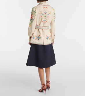 RIXO suede jacket. Floral embroidery, fully lined. Button fastenings through front.