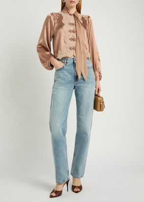 RIXO's 'Elettrice' blouse draws inspiration from founder Orlagh's vintage find on London's bustling Portobello Road. Tailored from airy cotton-poplin, it has a double-breasted profile and a boxy fit. The scalloped Peter Pan collar is accented with swirls of broderie anglaise.