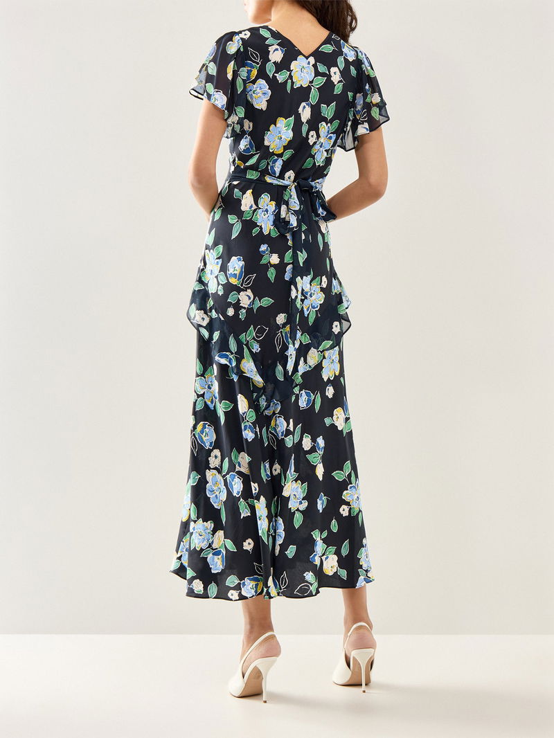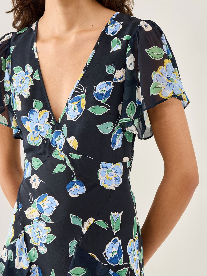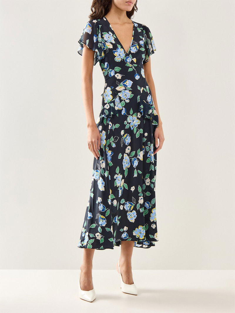 The Evie Dress by Rixo reflects the brand’s romantic aesthetic through floral print and flattering proportions. Crafted from a lightweight fabric in navy tones, it drapes beautifully for ease and movement. Pair with boots or heels depending on the occasion. A timeless dress that delivers effortless sophistication.