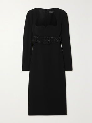 Dress, Leopard-print, Crepe, Crystals, Shirred cuffs, Concealed hook and zip fastening at back, Lightweight, non-stretchy fabric.