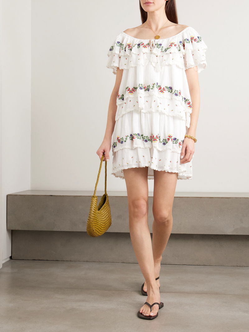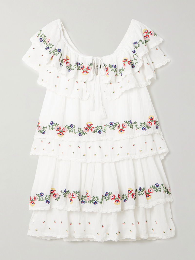 Leilani Tiered Embroidered Cotton-voile Mini Dress