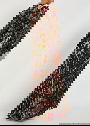 RIXO's 'Linnett' dress flutters with rows upon rows of flouncy ruffles. Made from wispy silk-chiffon, it's printed with a beautiful 'Waterblossom' pattern developed in-house and has romantic blouson sleeves.