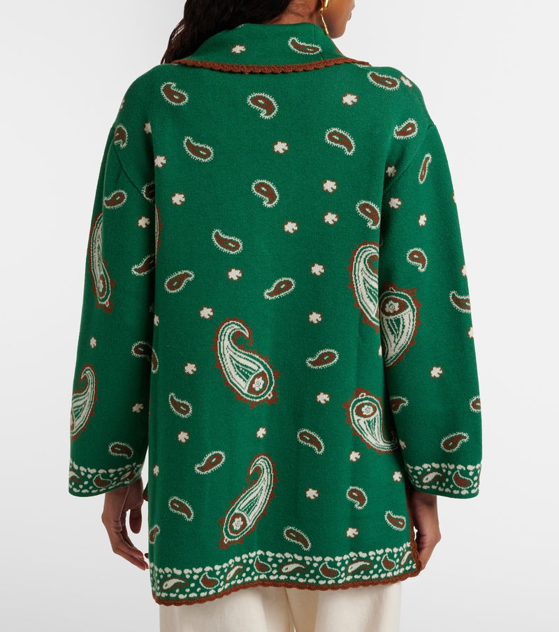 The Morla cardigan from Rixo is crafted from a soft blend of wool and cotton, and decorated with a paisley motif throughout. This design is made for a relaxed fit, featuring a shawl collar and front patch pockets.