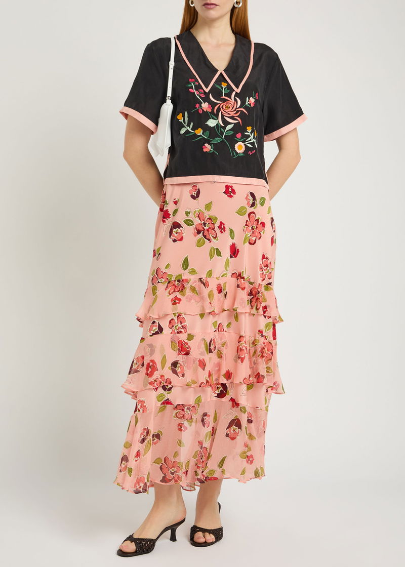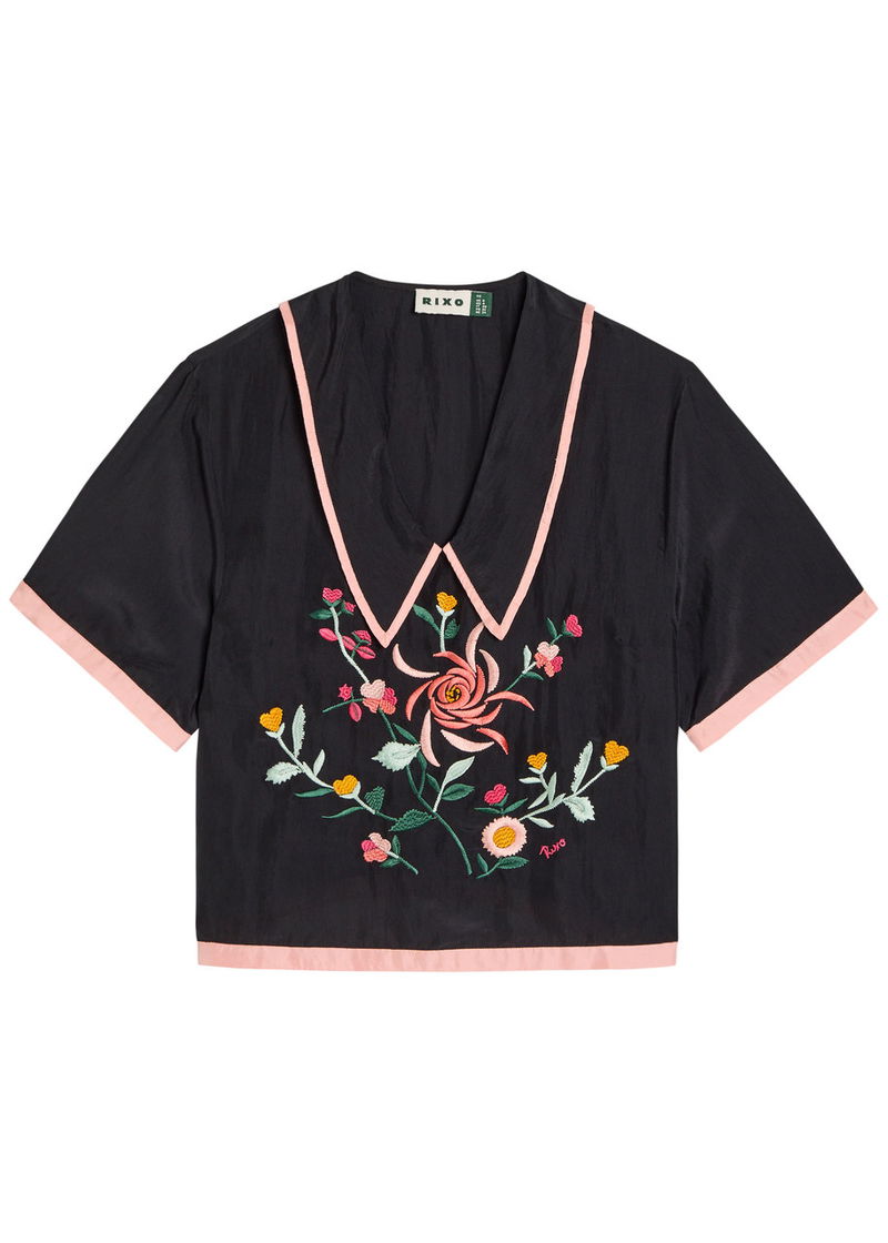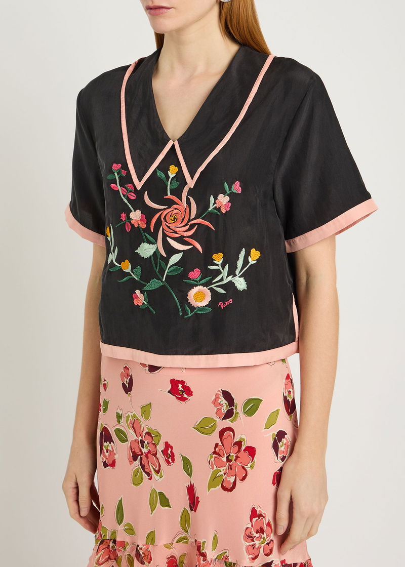 Nicolina Floral-embroidered Silk Top