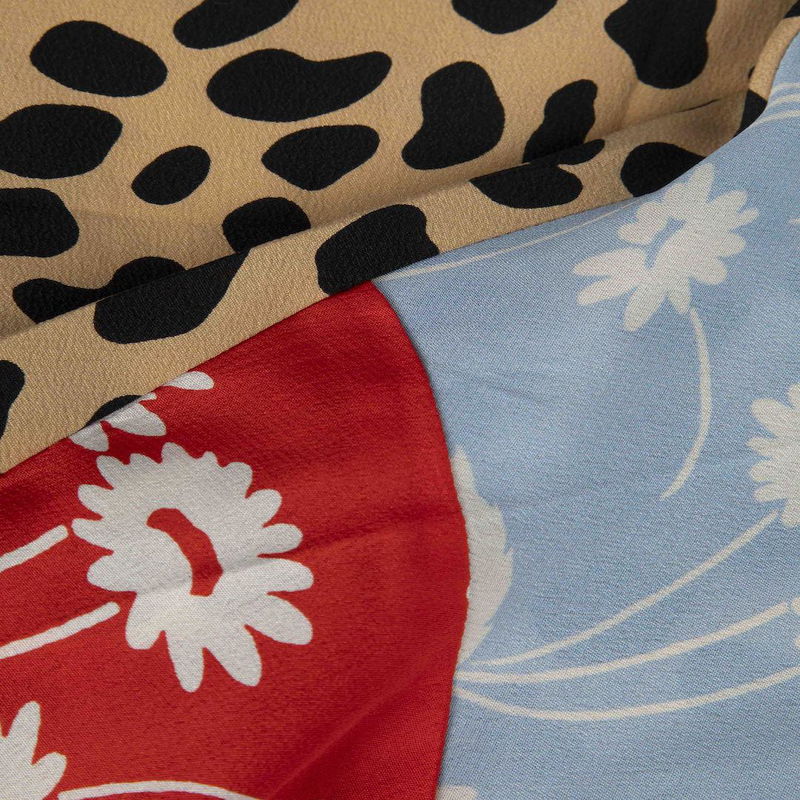 Red floral and leopard print midi wrap dress in excellent, pre-worn condition. Mid-length sleeves and waist tie fastening. See images for signs of wear.