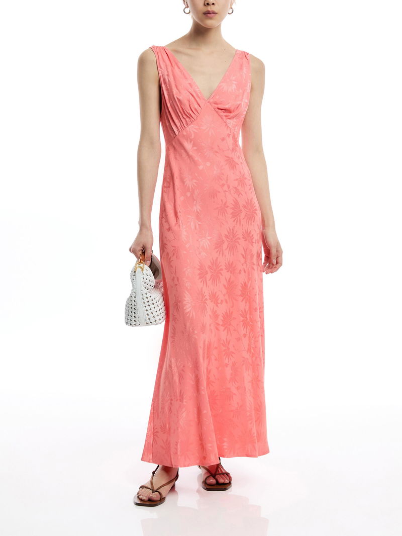 The Sandrine midi dress’s poppy patterned jacquard gets you occasion ready in moments. This bias-cut slip style was inspired by Thirties vintage.