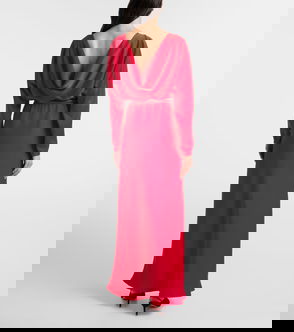 Dress, Silk-satin, Draped, Pleated, Cape-effect sleeves, Concealed hook and zip fastening at side, Button fastening at neck, Partially lined, Lightweight, non-stretchy fabric.