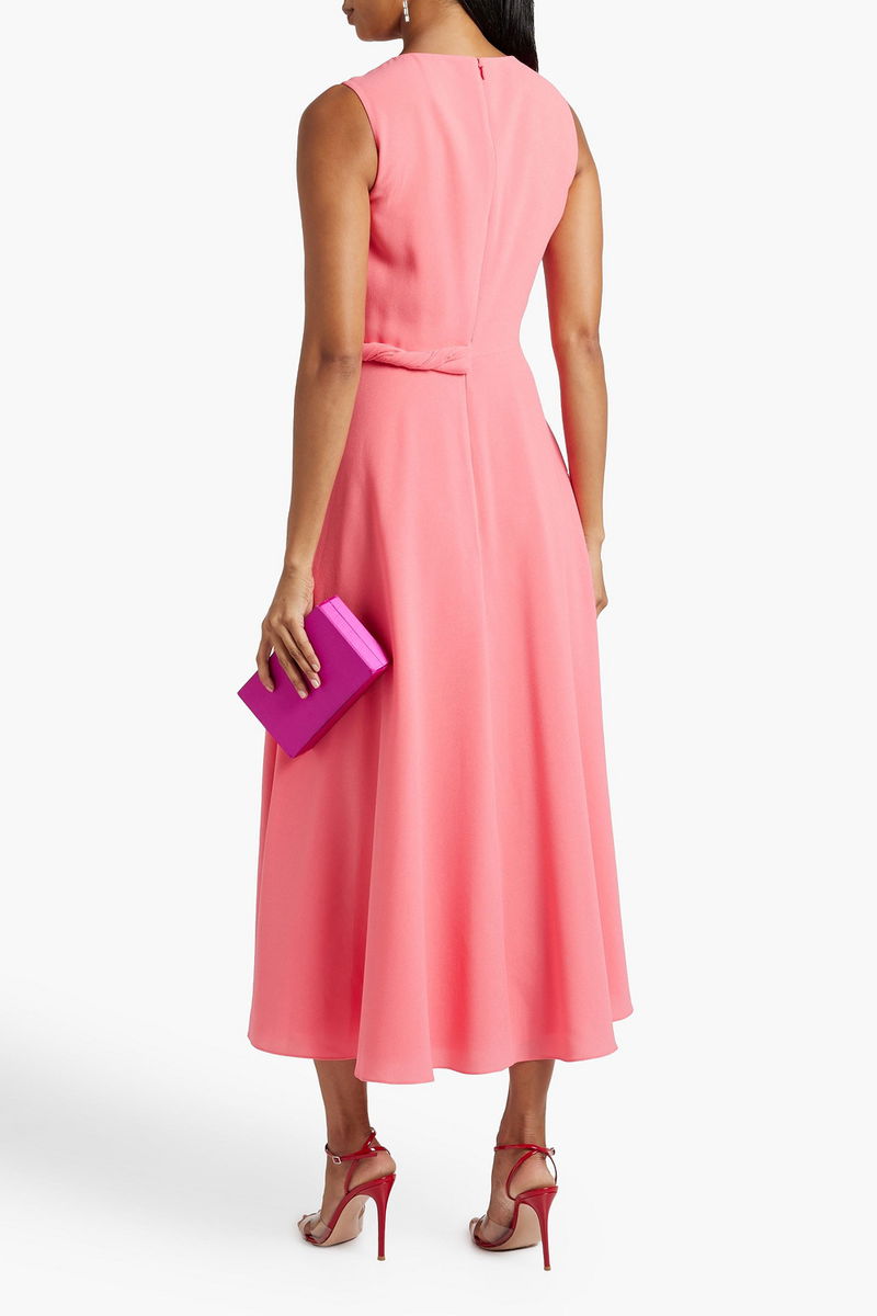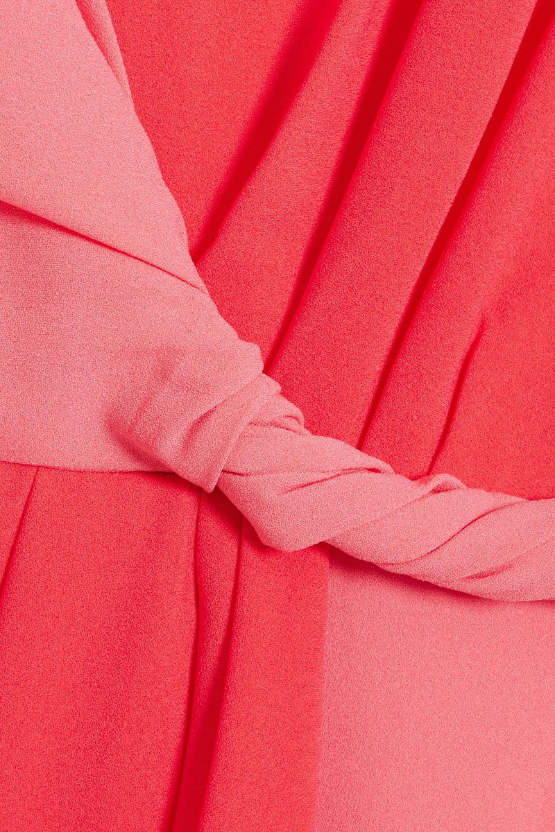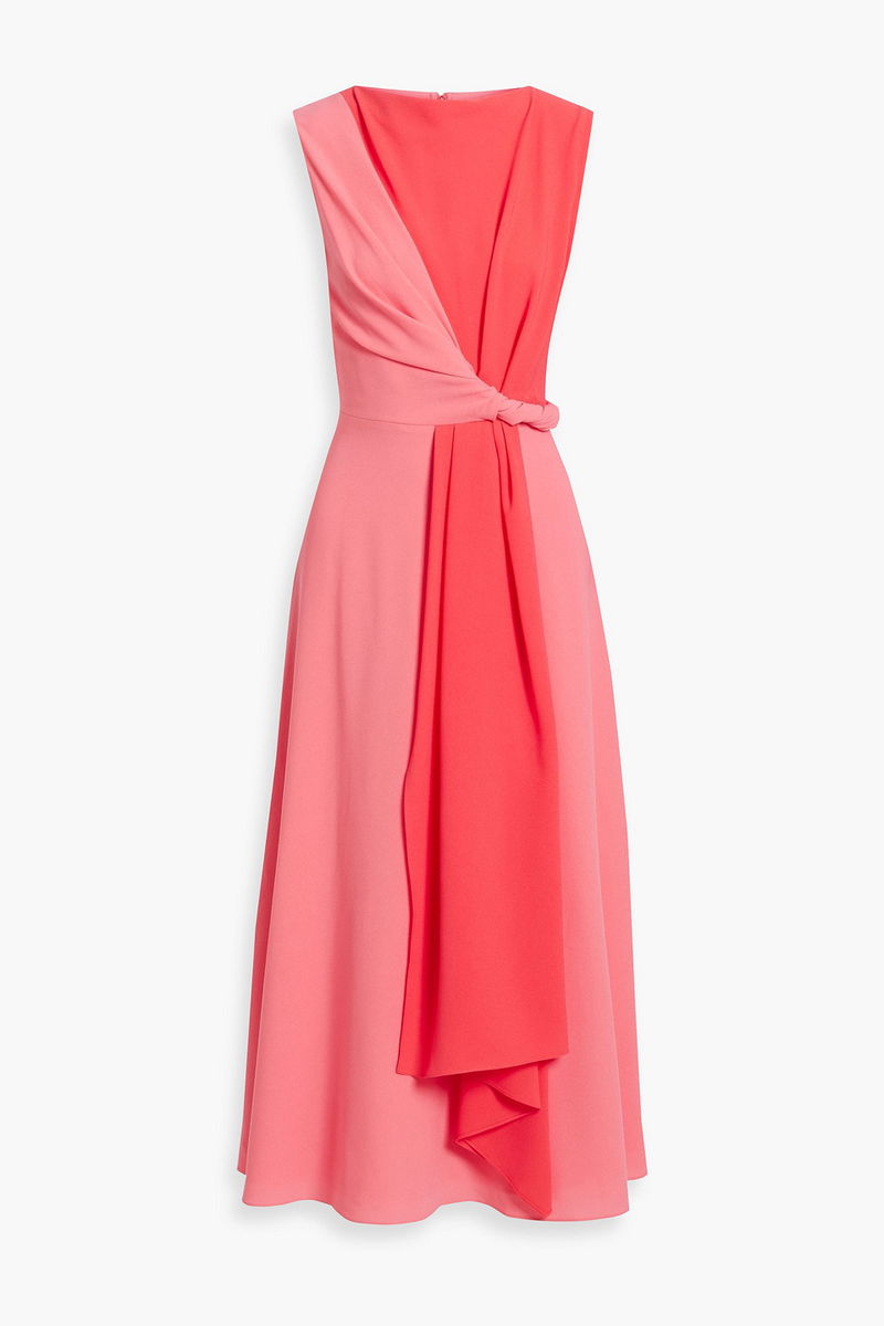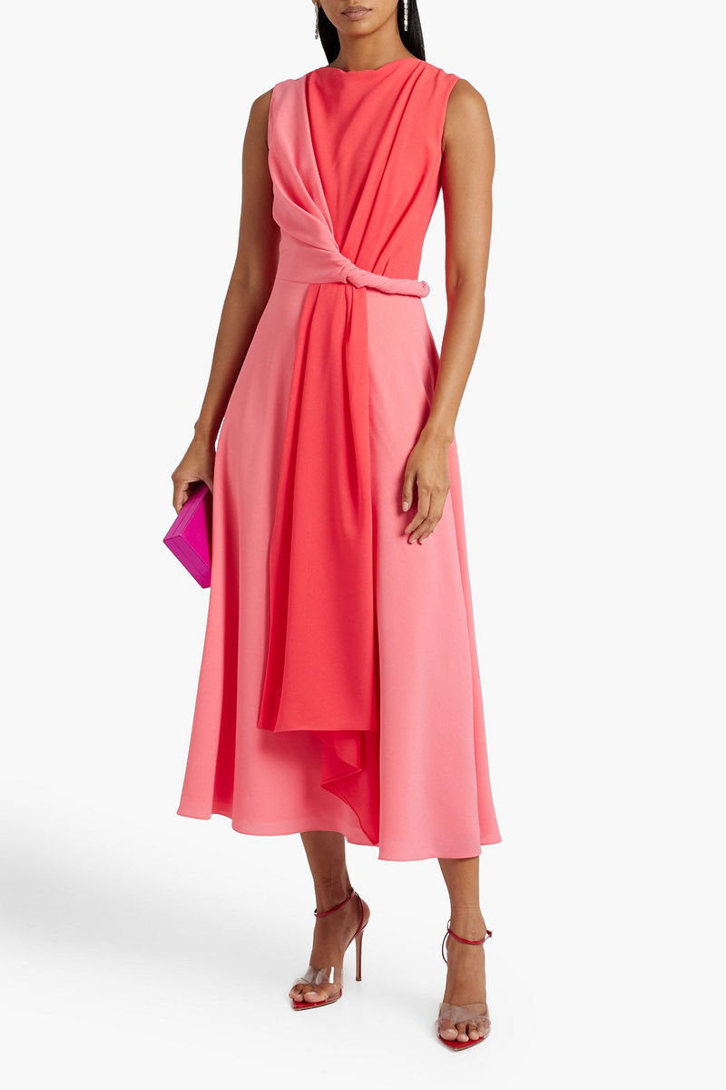 Dress. Two-tone. Crepe. Twisted. Concealed hook and zip fastening at back. Fully lined. Non-stretchy fabric. Mid-weight fabric.