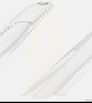 Crystal-embellished Caped Crêpe Gown