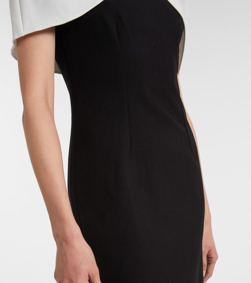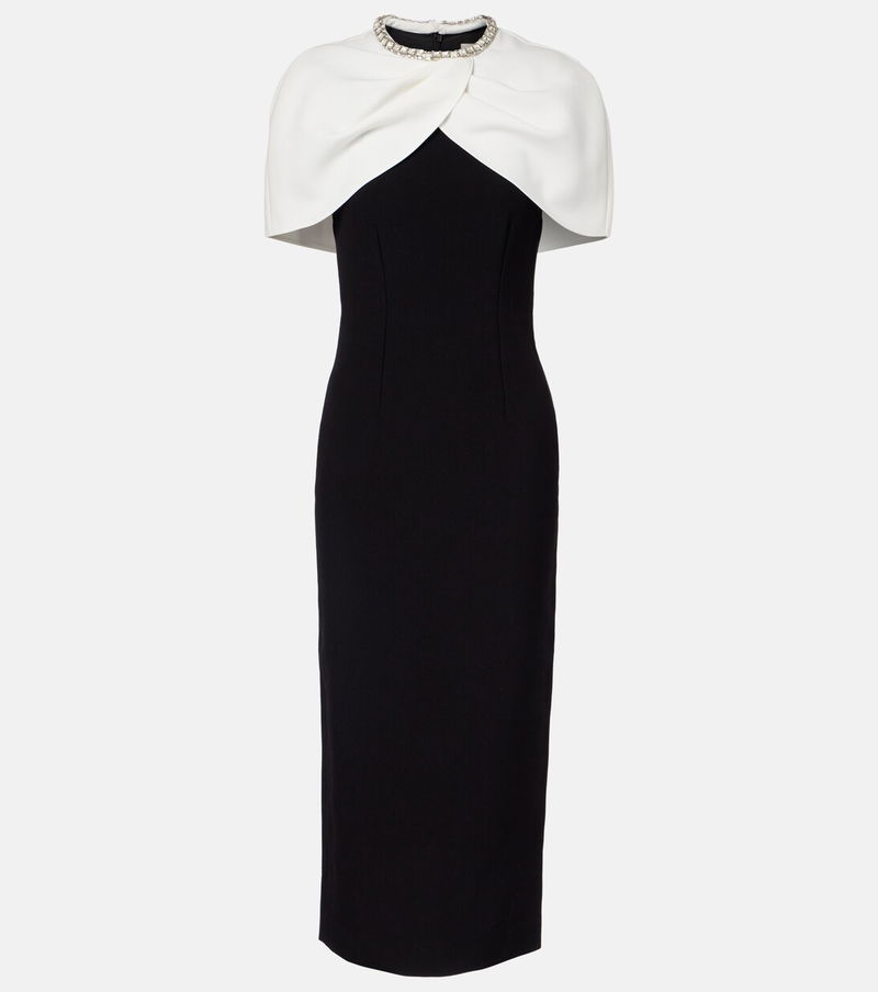 Celebrate life’s special occasions in confidence and grace with Roland Mouret’s iconic designs. This crêpe cocktail dress features a cape detail around the shoulders, accented by a crystal-embellished collar.