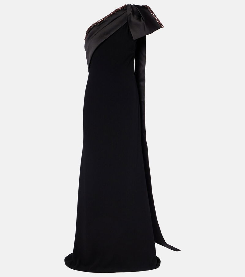 Feather-Trimmed Crêpe Satin Shirt Dress