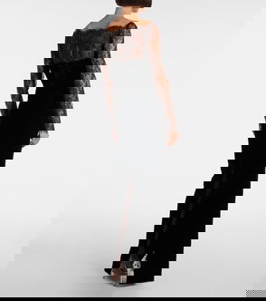 Feather-trimmed Crêpe Maxi Shirt Dress