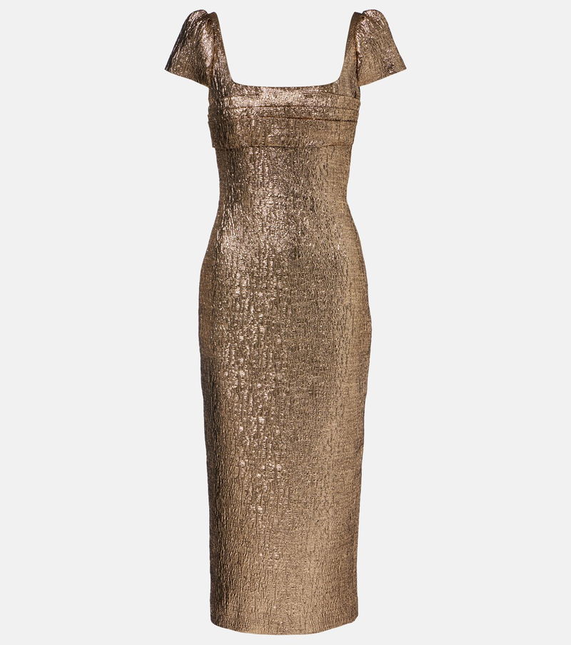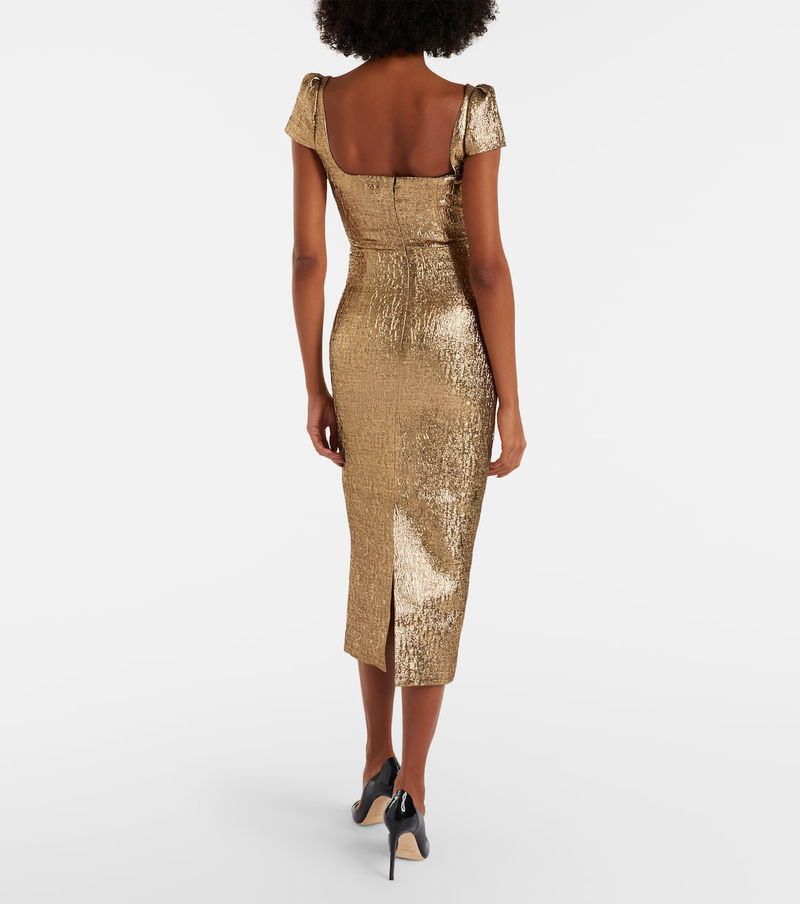 Celebrate life’s special occasions in confidence and grace with Roland Mouret’s iconic designs. This cocktail dress arrives at an ankle length and is made from lamé jacquard featuring draped detailing.