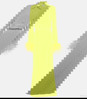 Feather-trimmed Crêpe Maxi Shirt Dress