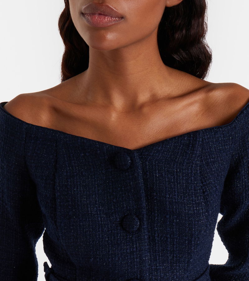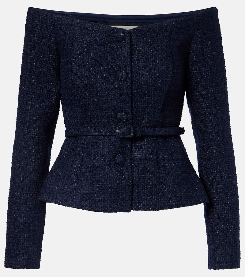 Impeccably tailored and endlessly sophisticated, this top from Roland Mouret is primed for elegant evening looks. The design is made from bouclé and comes in an off-shoulder silhouette accented by a tonal belt.